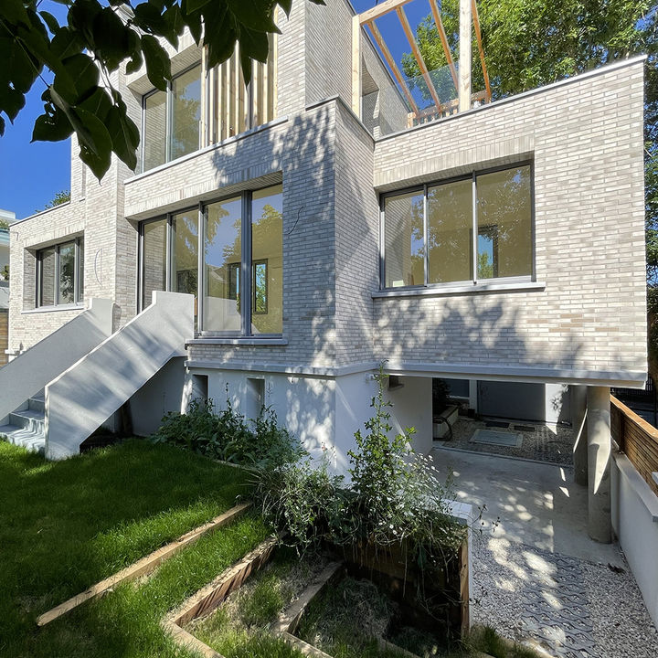 Maison d’architecte réalisée en construction neuve, issue d’une division parcellaire, développée à partir d’un projet architectural spécifique.